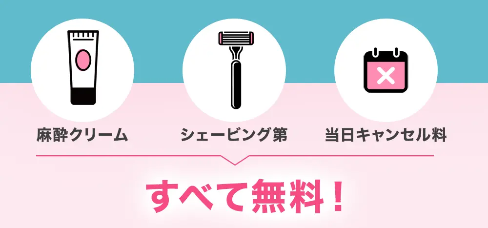 他院では有料になりがちな「麻酔クリーム」「シェービング代」「当日キャンセル料」がすべて無料な点もおすすめ!